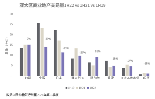 北京寫字樓租售中心網(wǎng)訊:仲量聯(lián)行最新《2022年二季度資本追蹤》報告顯示,由于加息周期收緊及近期高通脹影響,2022年上半年,中國、日本、澳大利亞等亞太區(qū)內(nèi)主要市場的商業(yè)
